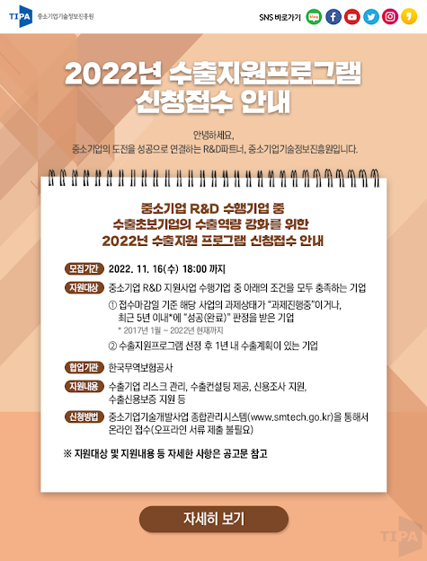 2022년 수출지원 프로그램 신청접수 안내 바로가기